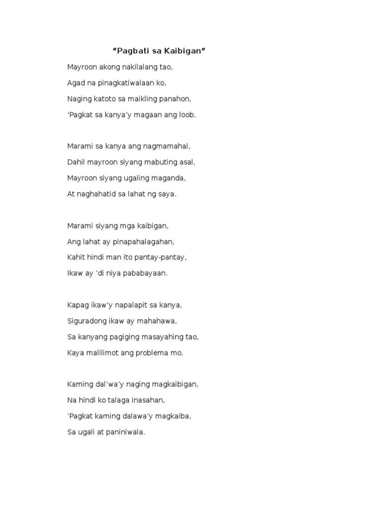 Pretties On The Inside On Going 170 55 29 INSIDES MUST SEEN FIRST. Maikling tula tungkol sa kaibigan Maikling tula tungkol sa kaibigan. Maraming salamat po sir sa LET Reviewer na ito makatutulong po ito sa mga Filipino majors na nagbabalik-aral para sa LET.